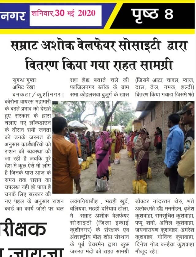 कोविड-19 महामारी के कठिन समय में अशोक सोशल वेलफेयर सोसाइटी ने मानवता की मिसाल पेश की। समाज के असहाय, मजलूम और जरूरतमंद परिवारों तक सहायता पहुँचाने के उद्देश्य से खाद्य सामग्री एवं दैनिक उपयोग की आवश्यक वस्तुओं का वितरण किया गया। इस सेवा कार्य के माध्यम से पीड़ित लोगों को संबल देने का प्रयास किया गया, ताकि संकट की घड़ी में कोई भी भूखा या बेसहारा न रहे।